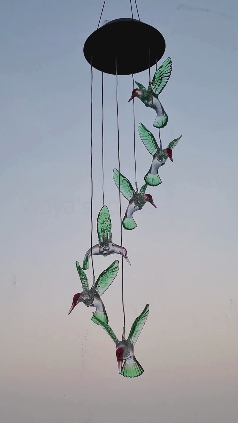 • Solar-Powered Lights: Built-in solar panel charges the lights during the day, illuminating the hummingbirds at night with soft, colorful lighting.