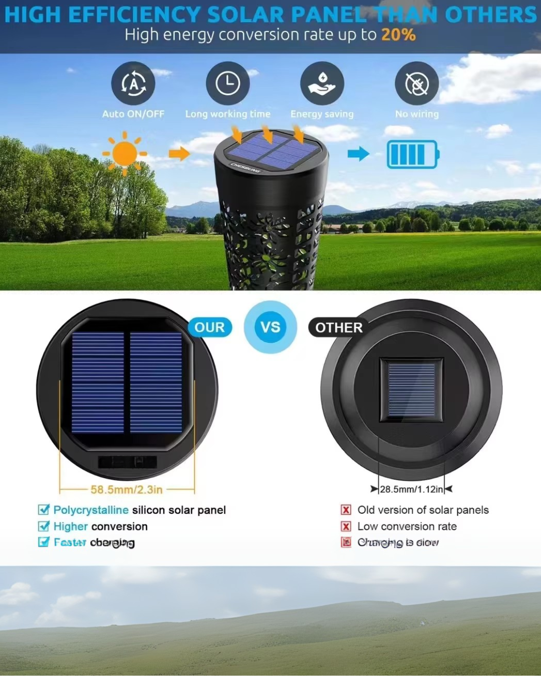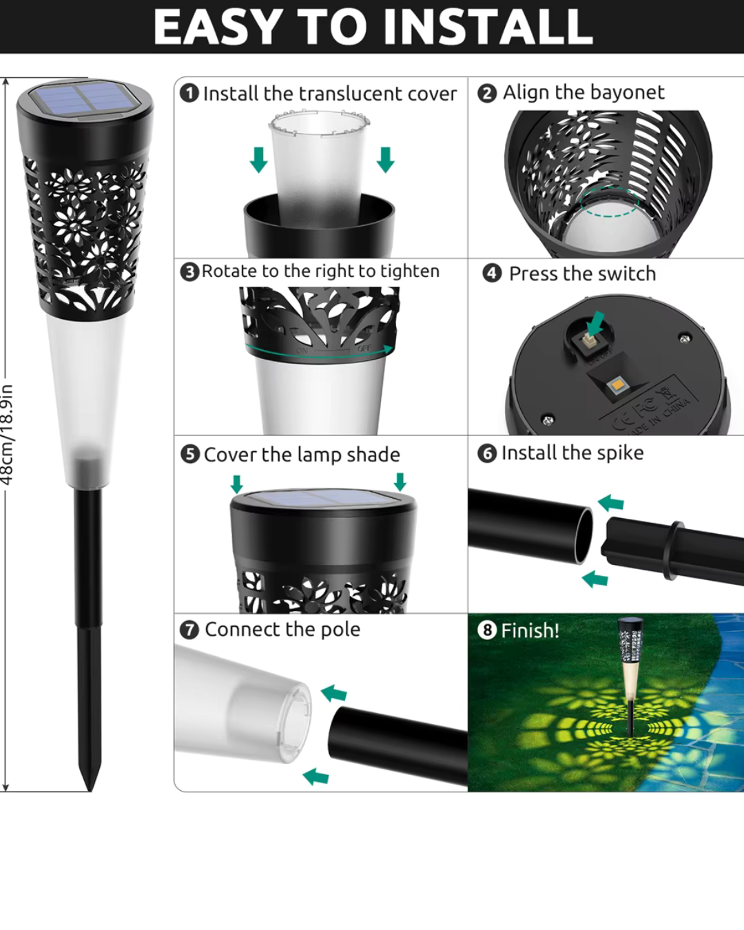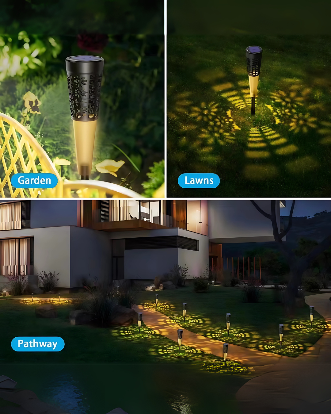 The shell part of the outdoor garden solar light has a beautiful line design, which is in accordance with the modern aesthetics. The warm light LED forms a special light pattern on the ground, making gardens and courtyards warm and elegant. It is not just a lamp, it is a work of art.