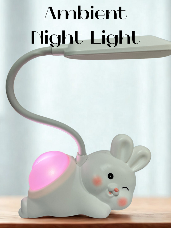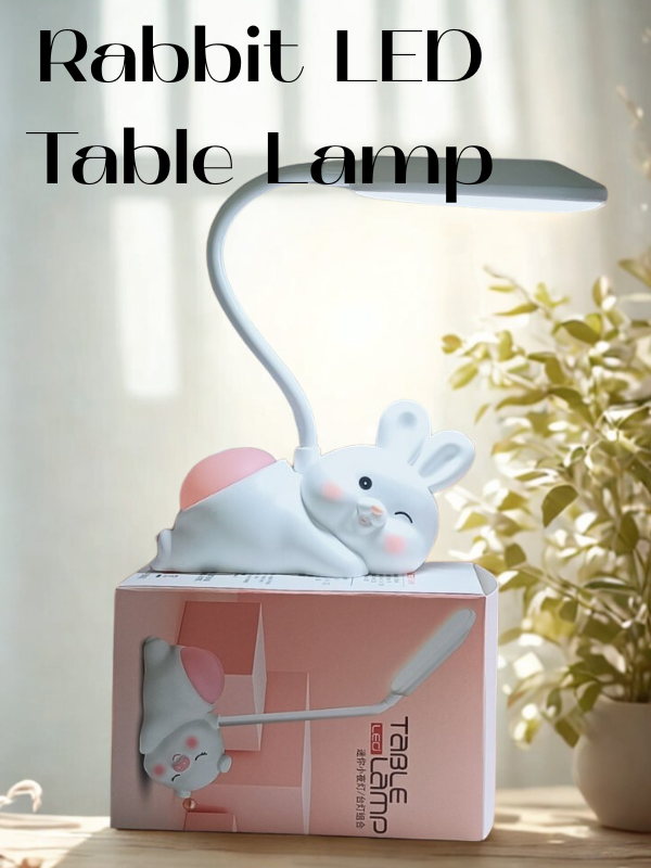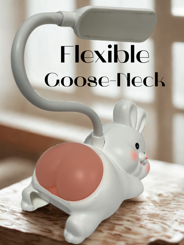 Illuminate your child's space with the Rabbit LED Table Lamp, a perfect blend of functionality and adorable design. Featuring a flexible gooseneck for adjustable lighting and a soft pink ambient glow, this lamp is ideal for bedtime stories, homework sessions, or as a comforting night light. Its USB rechargeable feature ensures convenience, allowing you to power it via laptops, power banks, or wall adapters. Compact and portable, it's a delightful addition to any kid's room, nursery, or study area.